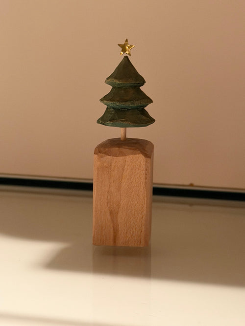 Festlicher Weihnachtsbaum - Handgefertigte Holzskulptur mit Goldstern